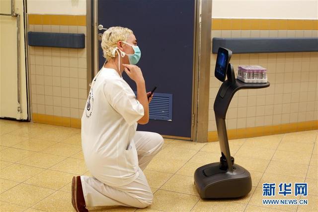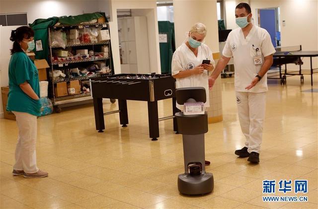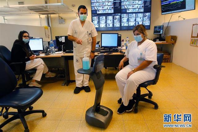 新华社5月12日电 作者吉尔科恩马根 在以色列特拉维夫市区附近的谢巴医疗中心新冠治疗科室,医护人员操作一台智能服务型机器人。这款机器人由以色列公司开发,目前正被以色列一些医院和医疗中心使用,以减少新冠疫情期间人与人之间的接触。这款机器人可以在患者之间输送药物,测量患者体温,还可以帮助患者与医护人员进行远程通信。新华社发(吉尔科恩马根 摄)