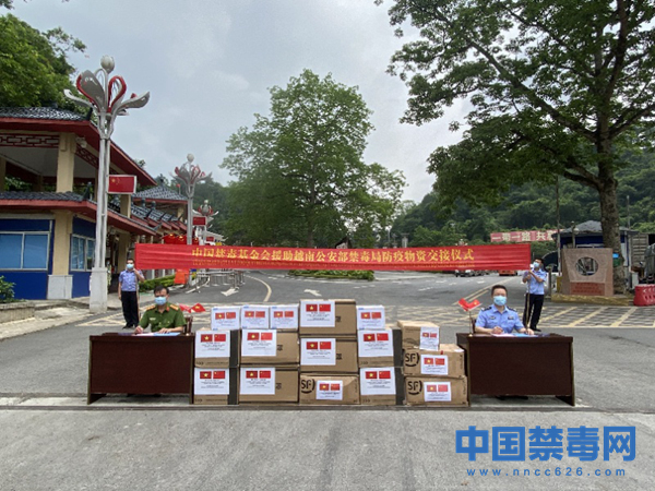 截止目前,中国禁毒基金会先后向缅甸、老挝、柬埔寨、越南、菲律宾等国禁毒部门援助价值人民币36万余元的防疫物资。