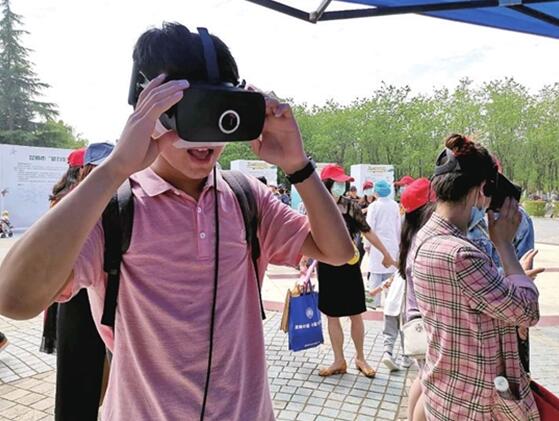 现场,环保企业带来VR实景体验,让市民“实景”感受神秘的生物世界。一位头戴VR眼镜的市民沉浸其中,直呼眼前的海底世界太壮观了。为了让市民进一步了解生物多样性知识,工作人员还向市民发放生物多样性保护、文明城市创建等宣传资料,同时设置宣传展板。