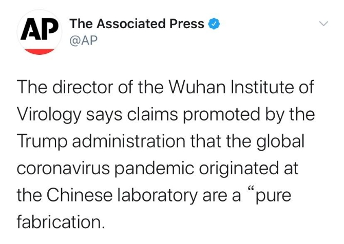 武汉病毒研究所所长对中国环球电视网的记者说,美国总统特朗普和其他人所说的病毒可能是从该所泄漏的说法“完全是无中生有”。