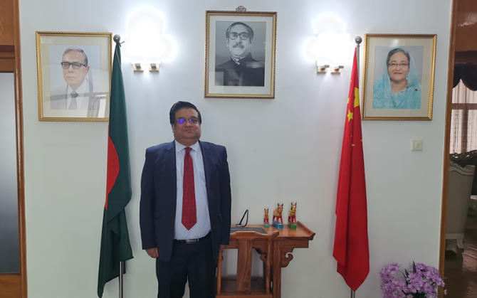 孟加拉国驻华大使马赫布·乌兹·扎曼。(孟加拉国驻华大使馆供图)