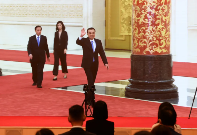 5月28日下午,李克强总理现身人民大会堂三楼金色大厅,微笑着向几公里外“屏”中的记者们挥手致意。