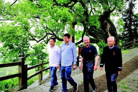5月21日,金坵村的四位村书记兰文忠(现任)、潘欣根、陈立平、雷正余(从左至右)走在村里的小路上。记者崔力摄