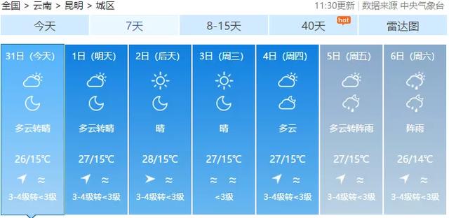 昆明最高气温将维持在26℃以上