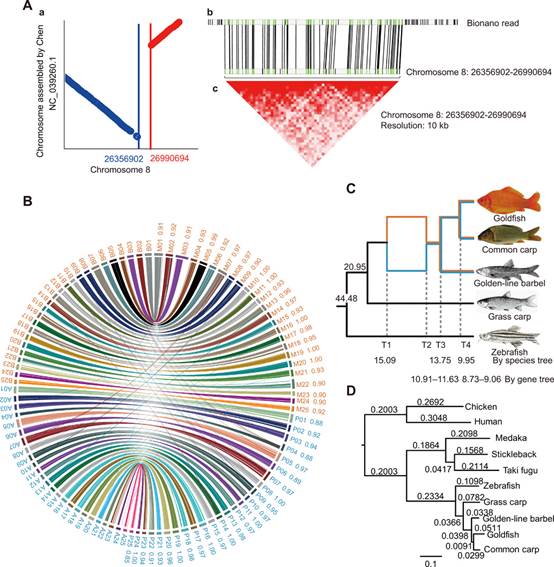 张亚平院士带领云南大学罗静教授、中科院昆明动物研究所吕雪梅研究员、湖南师范大学刘少军院士、南京农业大学陈增建教授、中国农业科学院农业基因组研究所阮珏研究员和厦门大学徐鹏教授等团队,利用三代测序、Bionano光学图谱和染色质构象捕获测序技术,对红鲫基因组从头组装,获得50条染色体的单倍型参考基因组,完整性和准确性均高于近期发表的金鱼、鲤鱼基因组。同时基于鲤亚科、鲃亚科、裂腹鱼亚科代表物种的线粒体基因组和全基因组标记的系统发育树构建和比较,首次成功对红鲫两个亚基因组的母系和父系亲本来源作了清晰的划分。