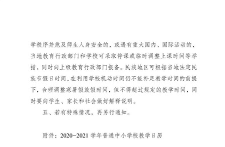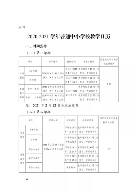 普通高中一、二年级:2020年8月15日—8月30日放假