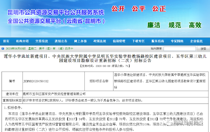 6月9日,昆明市公共资源交易平台发布《莲华小学选址新建项目、中央民族大学附属中学昆明五华实验学校教场路校区建设项目、五华区第三幼儿园建设项目勘察设计重新招标(二次)招标公告》,意味着这三所项目进度更新。随着这些功能齐全的新校区落地,将改善原有老学校的教学环境,升级片区教育配套。