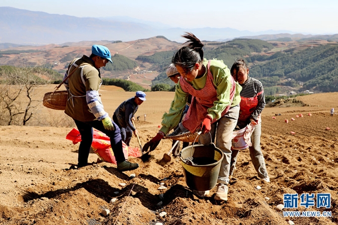 昭通群众在栽种洋芋(3月15日摄)。新华网发 永善县委宣传部供图