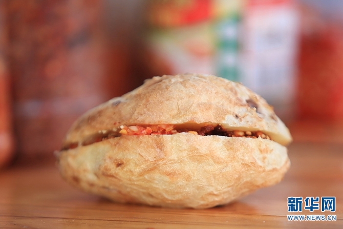 对于大多数云南人来说,将烤洋芋对半切开加入各种配料是升华烤洋芋风味的最佳吃法(5月23日摄)。新华网 徐华陵/摄