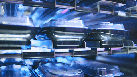 顾客进入餐厅,由机器人带往相应餐桌;落座扫码自助点餐后,菜品经由传送带运至相应机器人处制作;菜品制作完成,又会经餐厅安装的云轨从“天”而降;期间,送餐机器人为顾客送上小菜;餐毕后,还想吃冰淇淋,还可以扫码让冰淇淋机器人制作甜筒……