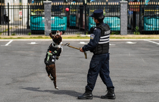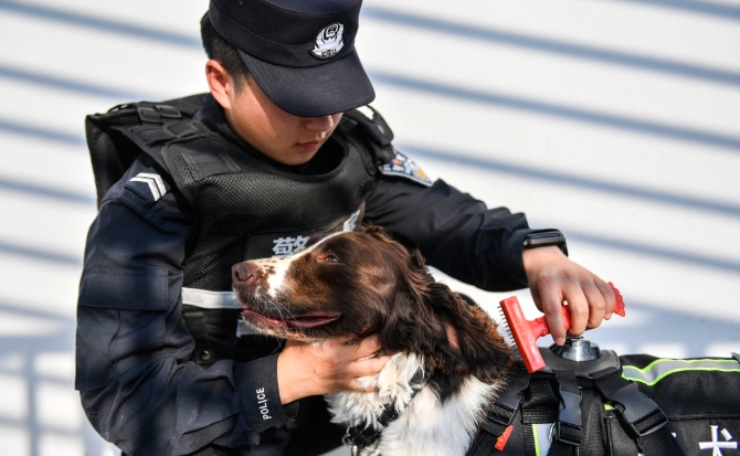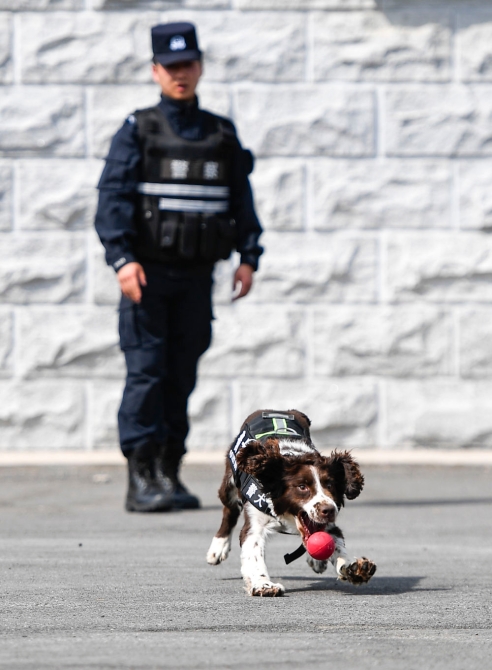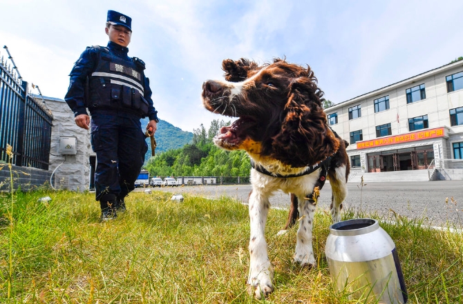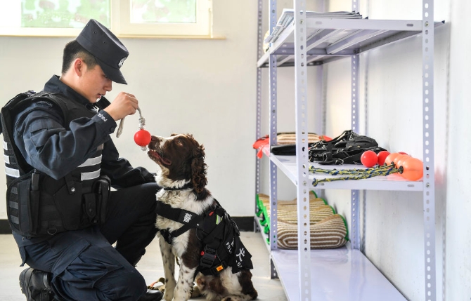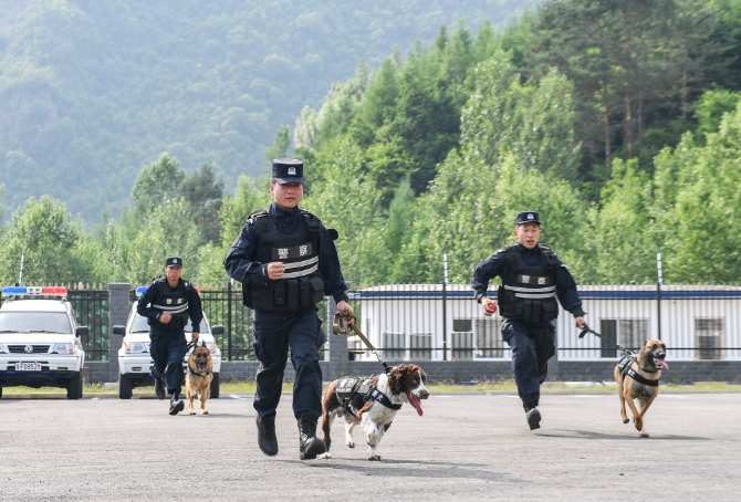 组成了吉林白山边境地区的首支缉毒防暴警犬队