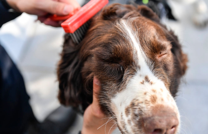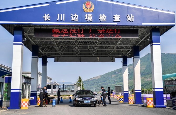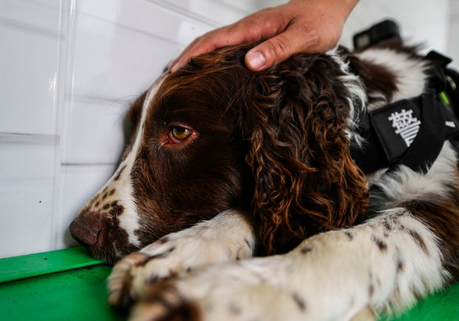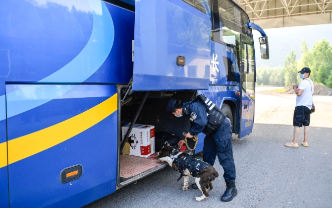 白山边境管理支队长川边境检查站的一只缉毒犬