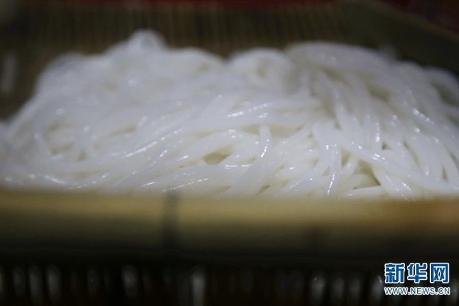 被烫熟的米线(6月21日摄)。新华网 徐华陵 摄
