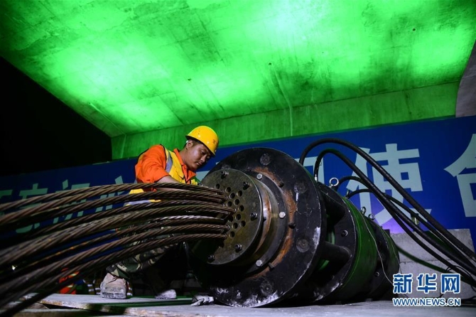 6月28日,在新台高速公路山东平邑段,工作人员对跨兖石铁路转体桥实施转体作业。 记者 郭绪雷 摄