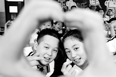 安徽合肥小学生向教育扶贫友好结对学校的同学送上祝福。蒋娟娟摄/光明图片