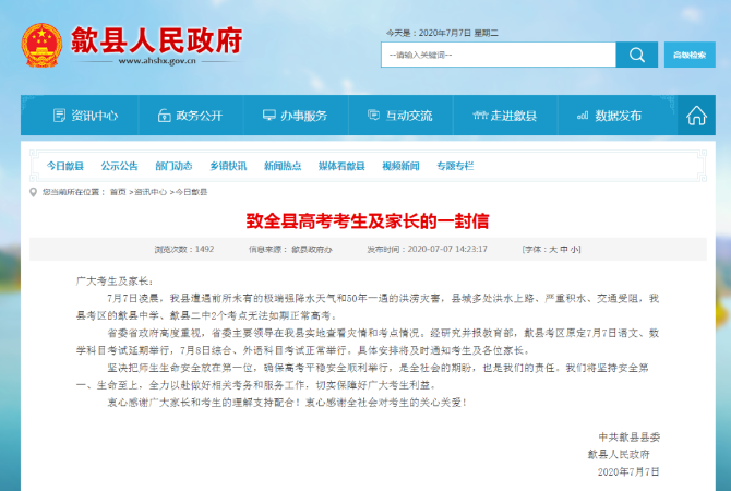今天,2020年高考拉开帷幕。武汉降下大雨,考生家长等候在武汉东湖中学考点外。新华社记者 肖艺九 摄