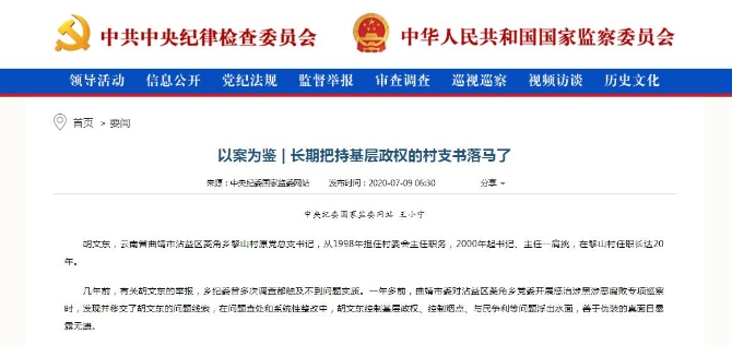 2018年11月23日,胡文东因涉嫌违纪违法接受审查调查。经查,胡文东违反政治纪律,对党不忠诚、不老实,欺上瞒下;操纵村级换届选举,连任村党总支书记、主任;违反廉洁纪律,组织安排他人虚报冒领、套取和截留宣曲高速公路征地补偿款;违反群众纪律,安排他人骗取、克扣扶贫安居房补助款,长期把持控制烟叶收购点,非法购买囤积土地;违反工作纪律,贯彻落实上级部门的工作部署,表态高、落实差;违反生活纪律,与多名女性多次发生并与他人长期保持不正当性关系。