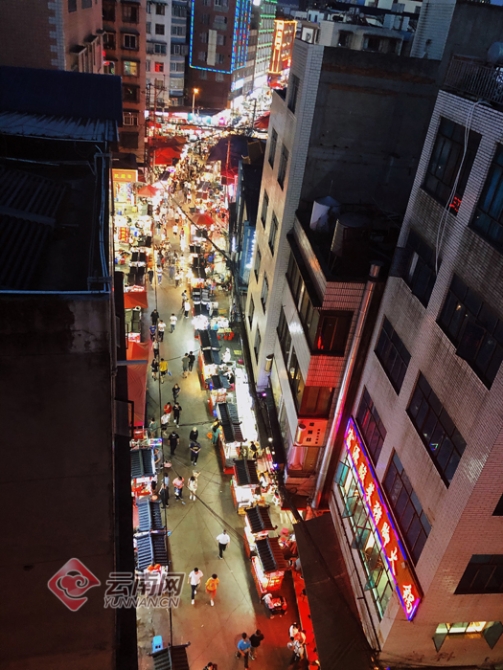 位于昆明市官渡区的双桥村夜市风情街,人间烟火气儿向晚渐浓。