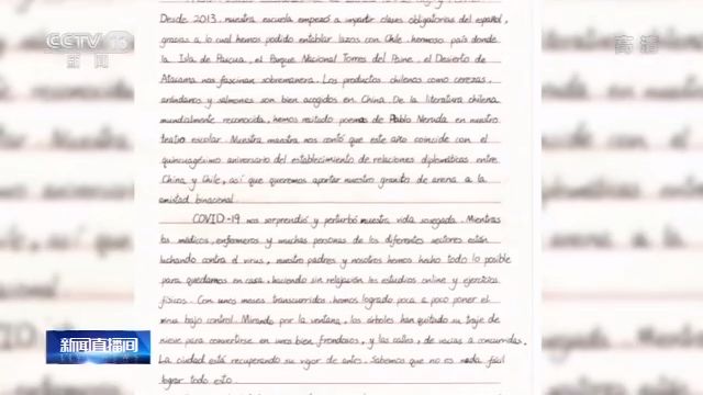 在回信中,智利总统皮涅拉感谢学生们热情洋溢的来信。他在回信中畅叙中智深厚友谊,特别提到疫情面前,两国守望相助、共克时艰。