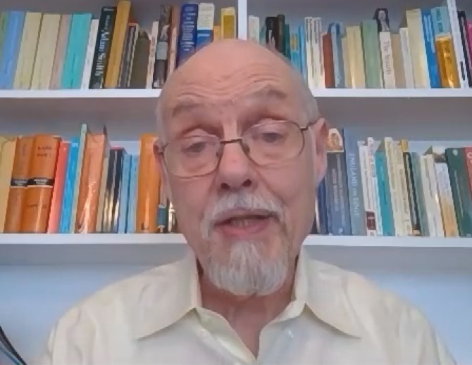 △英国经济学者休·古达克接受总台记者采访