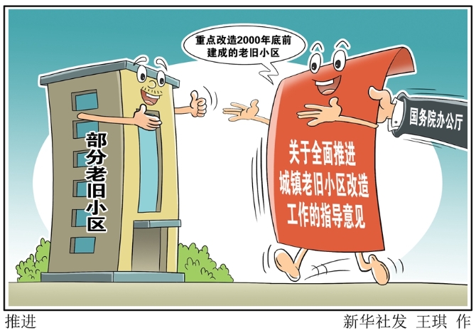 新华社北京7月20日电 国务院办公厅日前印发《关于全面推进城镇老旧小区改造工作的指导意见》(以下简称《意见》),要求按照党中央、国务院决策部署,全面推进城镇老旧小区改造工作,满足人民群众美好生活需要,推动惠民生扩内需,推进城市更新和开发建设方式转型,促进经济高质量发展。