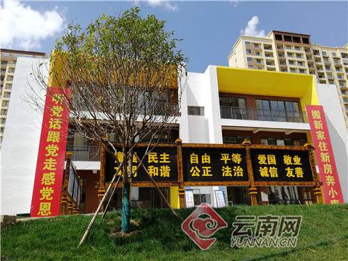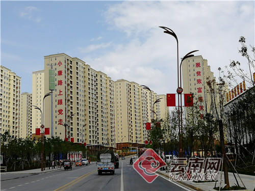 “小康路上跟党走,脱贫致富感党恩。”夕阳西下,安置区高楼外墙上的大型红色标格外醒目。路对面的小广场上人头攒动,从“山里人”变“城里人”的搬迁群众相聚一起对唱山歌,“搬迁住进新房子,啊来来……”“感谢党的好政策,啊来来……”,深情的歌声唱响了搬迁后的幸福新生活。(云南网 记者沈迅 蔡侯友)