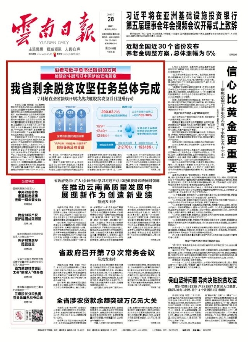 为认真贯彻落实习近平总书记在决战决胜脱贫攻坚座谈会上的重要讲话精神,云南省坚持新冠肺炎疫情和决战决胜脱贫攻坚两场硬仗一起打,完成剩余脱贫攻坚任务和巩固脱贫成果一起抓,从3月1日至6月30日发起决战决胜脱贫攻坚百日总攻行动,集中力量向最后的贫困堡垒发起总攻。