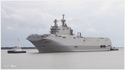 图为俄罗斯此前定制但最终未能装备的“西北风”级两栖攻击舰。“西北风”级两栖攻击舰为法国海军两栖作战与远洋投送主力,可以运载16架以上NH-90直升机或虎式武装直升机和70辆以上车辆,此外船上还包含900名陆战队员的运载空间。图片来源:俄罗斯国防部官网