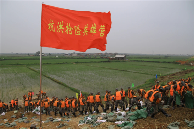 今年7月,受强降雨影响,江西鄱阳湖地区水位持续上涨,鄱阳站水位破1998年历史极值,南昌、九江、上饶等地洪水肆虐,严重威胁群众生命财产安全。哪里有危险,哪里就有人民子弟兵。7月14日上午8时,陆军第73集团军某合成旅闻令而动,3200余名官兵从皖东演训地域兵分两路,火速分赴九江、南昌展开防汛救灾任务。在该旅出征抗洪的队伍中,“抗洪抢险英雄营”的旗帜格外抢眼。而这次,该营回到22年前奋战的地方,再次决战九江。