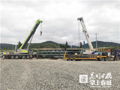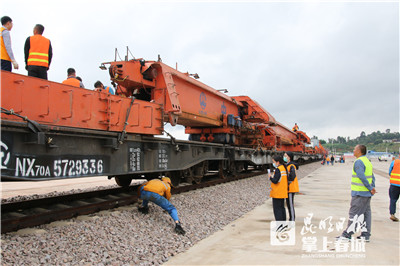 8月中旬以来,为全力配合架桥机装载,昆明车务段积极申请桃花村站超级超限货物装运资质,在装载过程中段货装部和车站货运管理人员加强现场货装安全把关,及时向中铁一局反馈架桥机装载加固存在问题并督促整改,确保符合装载方案和运输安全。