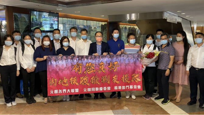 28日,国家卫健委医政医管局副局长、内地核酸检测支援队总领队李大川带领164名内地核酸检测支援人员抵达香港。