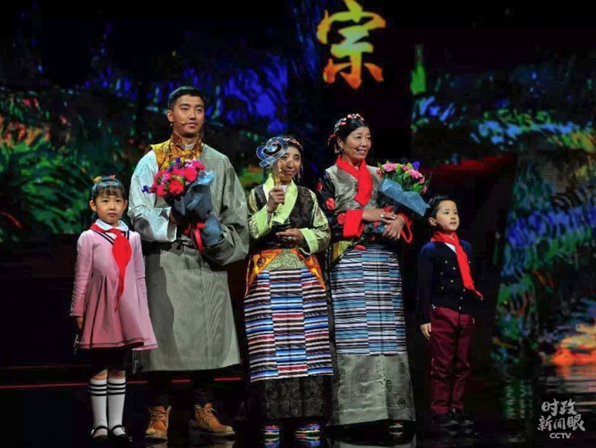 △西藏玉麦乡地处中国西南边陲,卓嘎(中)、央宗(右二)姐妹和父亲桑杰曲巴在这里放牧守边34年。总书记曾回信勉励她们“继续传承爱国守边的精神”。这是两姐妹一起当选感动中国2017年度人物。