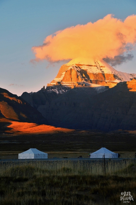 △夕照中的冈仁波齐峰,意为“雪山宝贝”。
