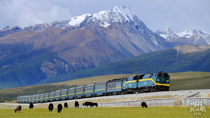 △青藏铁路列车运行在念青唐古拉山脚下。