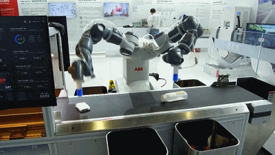 △双臂机器人对垃圾进行智能分拣