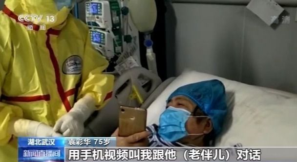 袁彩华:抢救加上昏迷一共是6天,后来是他们用手机,用手机视频叫我跟他(老伴儿)对话,他来唤醒了我,后来我听到声音以后,我慢慢把眼睛睁开,睁开以后,看他(老伴儿)很安全在那里,坐在那里,精神很好,所以我就放心了,就这样醒过来了。