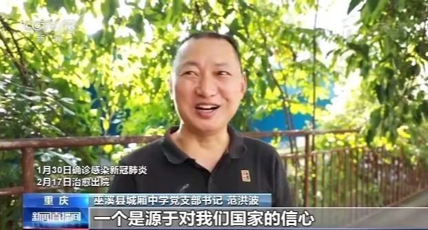 重庆市巫溪县城厢中学党支部书记 范洪波:治疗的时候我当然有信心,一个是源于对我们国家的信心,对政府的信心,第二个是源自对我的亲人啊,朋友啊,他们给我打气,第三个是我个人吧,我的心态很好,所以我很有信心。