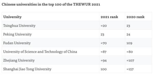 进入前100名的中国大学从去年的3所增加到今年的6所 图片来源:THE