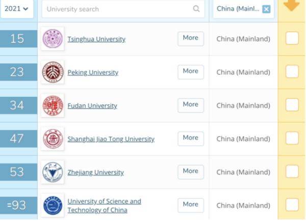 THE排名显示,除清华大学,还有5所大学入围百强,分别是北京大学、复旦大学、中国科技大学、浙江大学和上海交通大学。进入百强的中国大陆高校数量比去年翻了一番,再创新高。