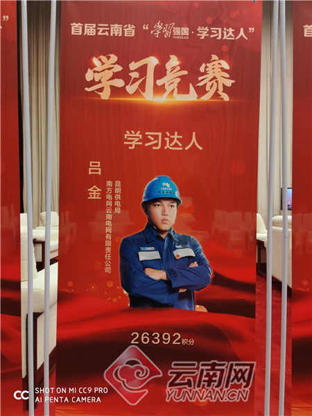 日前,由云南省国资委党委主办的“学习强国•学习达人”学习竞赛活动在昆明落下帷幕。云南省国资委系统的44家单位中“学习强国”APP个人总积分排名前20位、且个人总积分超21000分的学习达人进行积分评比竞赛,南方电网云南昆明供电局输电管理所吕金以25317的高分在积分评比竞赛中拔得头筹,荣获“学习达人”称号。
