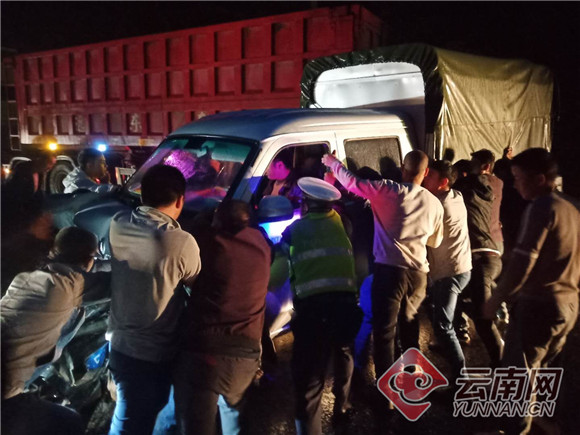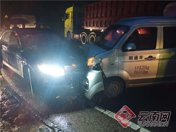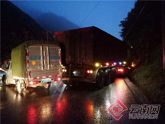 9月13日19时13分许,云南昭通市彝良县公安交警大队接警室接到报警称,在国道G352蚂蟥沟处一辆轻型载货汽车与一辆小轿车发生碰撞,致使过往车辆大面积滞留,请求出警处置。接警后,大队值班领导立即指令虎丘执勤组赶赴事故现场。经了解,由于天气原因,蚂蟥沟路段有浓雾,车辆能见度极低,加上下雨路滑致使车辆制动不良以及驾驶人员雨天浓雾中驾驶经验不足,造成了此次事故的发生,所幸并无人员受伤。此时雨没有停的意思,且渐渐下大,由于事故导致轻型载货汽车无法启动,现场已积压不少车辆,为尽快恢复交通,民警在取证后准备将事故车辆推至路边,但因车辆过重,且人手不足,加之雨天道路湿滑,无法推动。