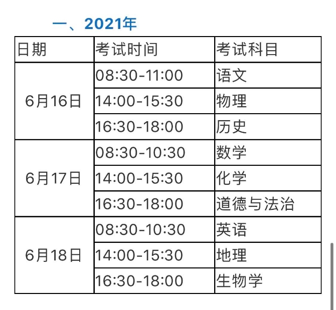 自2021年起,云南省初中学业水平考试的语文等9个科目笔试时间调整为每年的6月16、17、18日,详见《云南省初中学业水平考试时间安排表》,其余科目按该科目考试通知要求执行。