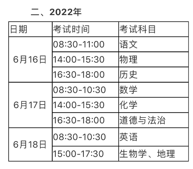 初中学业水平考试时间安排表