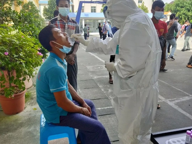来自缅甸马圭省的泽亚乌和伊洛瓦底省的道顿觉在瑞丽市的一家汽车修理厂工作。今天一早,他们就和工友相约到瑞丽市勐卯相社区居民委员会核酸检测点做检测,从递交提前准备好的个人信息单,到进行核酸检测,不到几分钟就完成了。