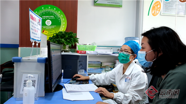 祥云县人民医院的“健康小屋”医生正向记者讲解健康管理系统。和仕勇/摄