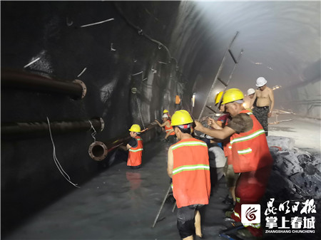 为成功攻克高温、高地应力、突泥涌水等重重困难,开工建设四年多来,中铁五局参建者发扬“困难多、办法更多,温度高、斗志更高,涌水大、干劲更大”的项目建设精神,与软弱围岩大变形展开了艰苦卓绝的博弈,坚持“开挖是龙头、仰拱是关键、衬砌是后盾,零耽搁、负交接、强保障”的施工原则,总结了“正工法、顺工序、配资源、抓安全、强考核、重激励”的软弱围岩施工对策,实行“长隧短打”,先后开设了17个正洞作业面,5个辅助坑道作业面,确保了隧道施工稳步推进。