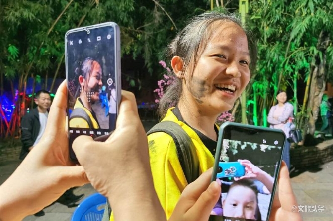 晚会将尽尾声时,客人都被抹花了脸。这是当地的一种祝福习俗。老乡说,就算今晚嫦娥下凡,也要把她的脸抹黑,因为脸越黑意味着祝福越多越吉祥。