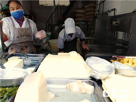 新鲜豆腐为何涨价?宏海农贸市场真信豆腐坊店主介绍,主要是房租、大豆价格上调,成本增加,新鲜豆腐才随市场行情而涨。