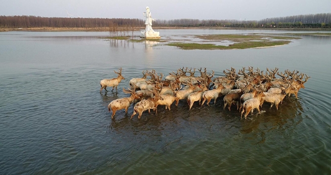 近年来,我国野生动物保护法律法规体系逐步完善,栖息地条件明显改善,濒危物种拯救与保护工作成效显著,以麋鹿为代表的我国特有物种种群扩大呈现出良好态势。目前我国已在北京南海子、江苏大丰、湖北石首分别建立了三大保护种群,仅江苏大丰麋鹿国家级自然保护区麋鹿种群数量就从1986年的39只发展至5681只,其中野外麋鹿种群数量1820只,基本实现了恢复野生麋鹿种群的目标。