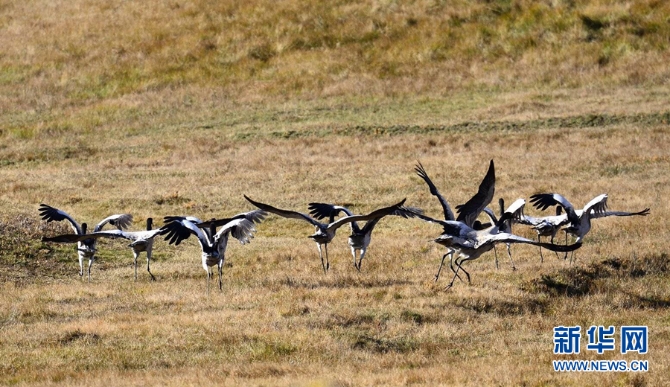 The first batch of wintering black-necked cranes have arrived in Xundian,Yunnan